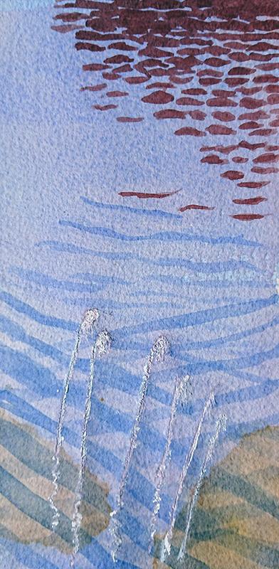 Efter hand lär du dig att känna akvarellens särart. Vi låter akvarellen fånga himmelens skiftningar och vattnets transparens.